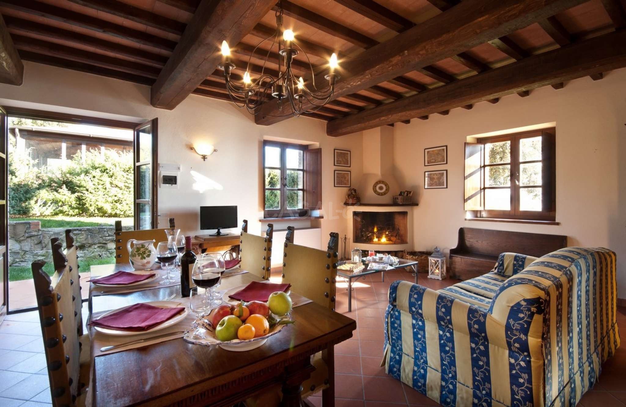 Das Appartment erstreckt sich über zwei Stockwerke: im Erdgeschoss liegen das Wohnzimmer mit einem offenen Kamin sowie die Kochnische. Das Schlafzimmer mit einem Doppelbett und das Badezimmer befinden sich im ersten Stock. Zum Garten hin finden Sie eine überdachte Terrasse mit Tisch und Stühlen und einem Sonnenschirm mit Blick auf den Garten und den Pool.