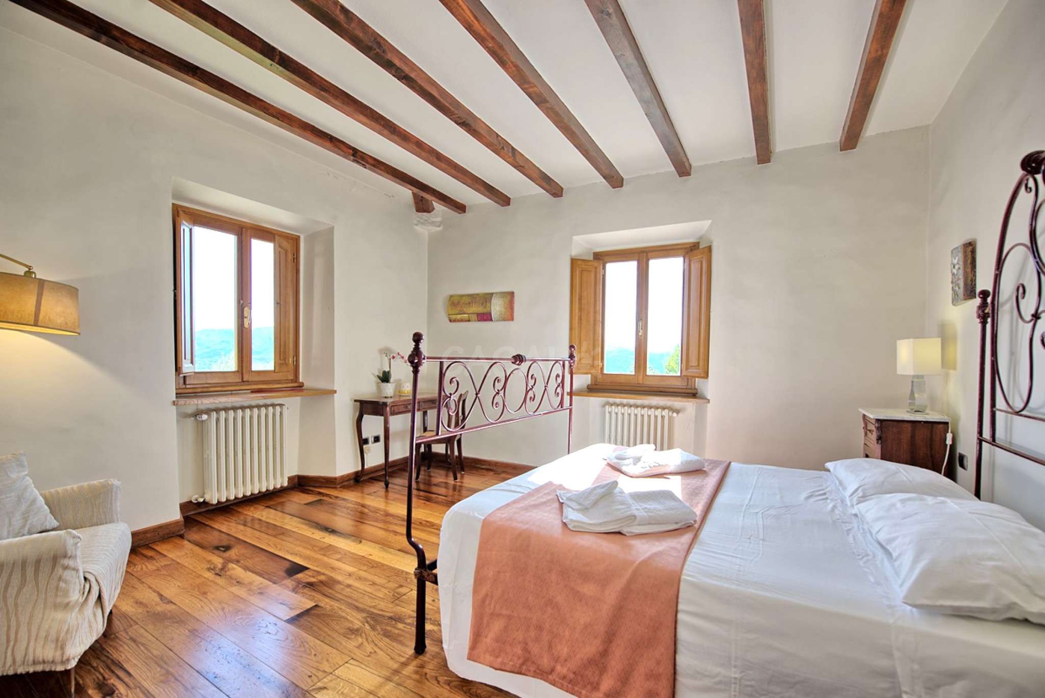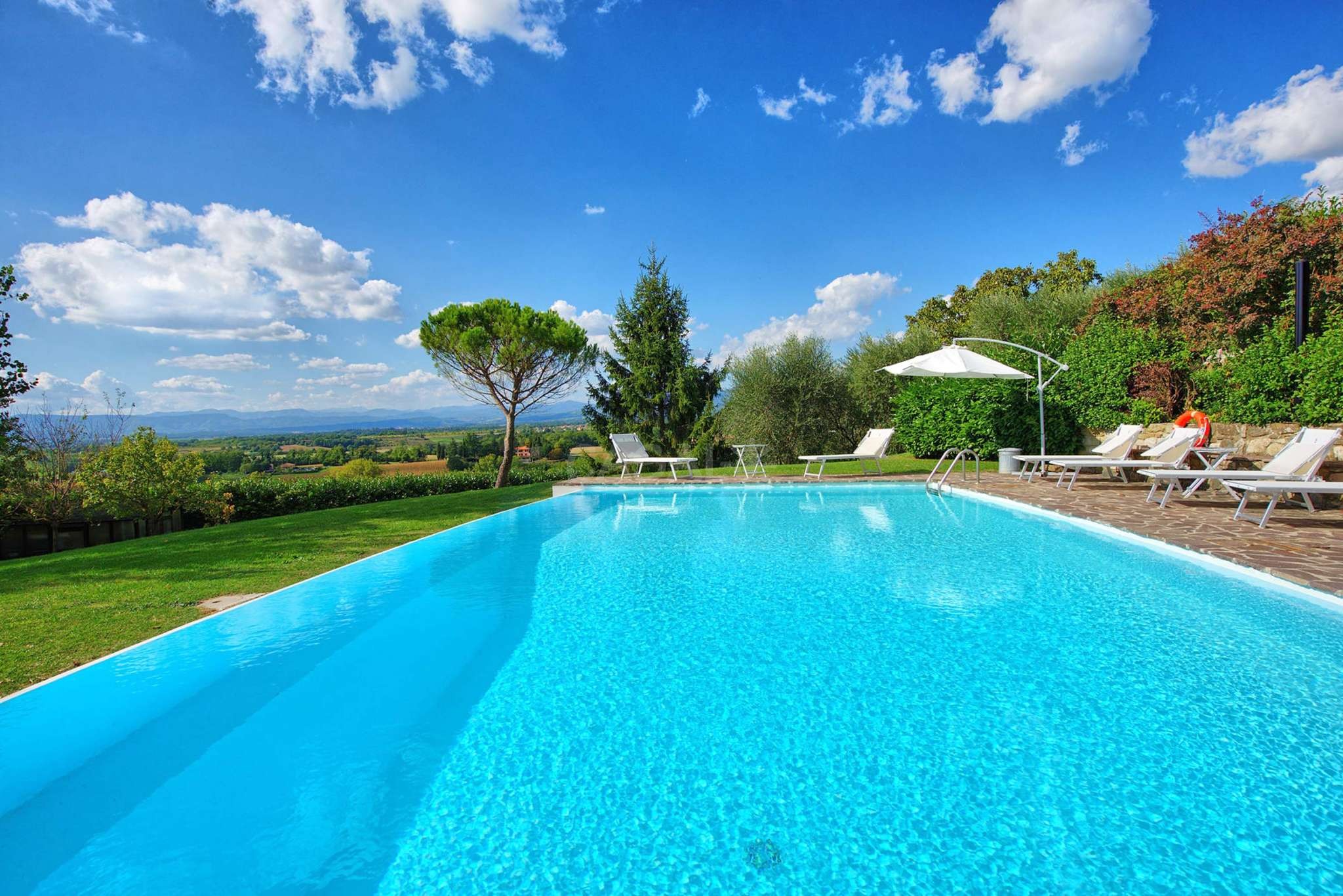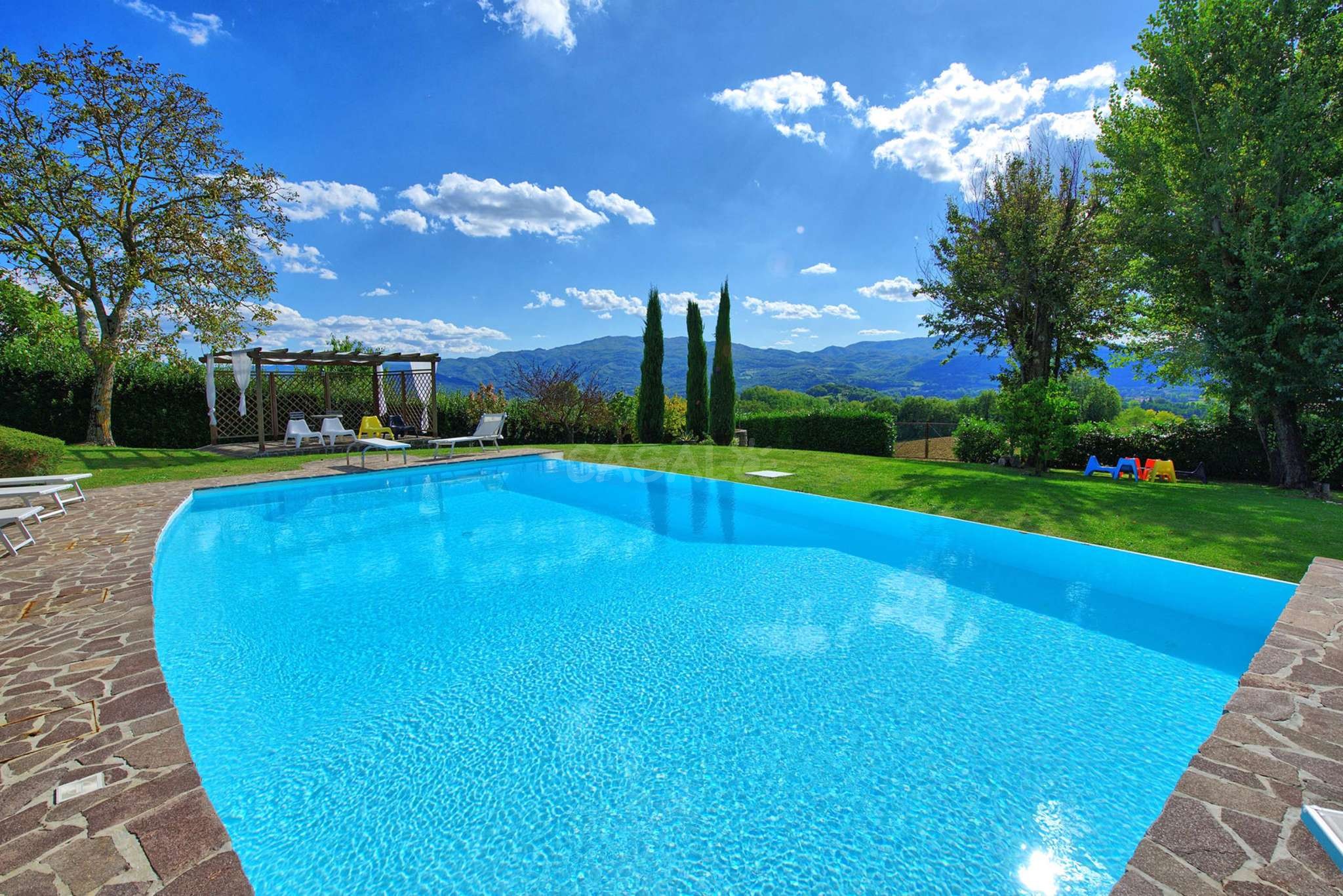 Diese Villa in der Toskana ist ideal für Gruppen und große Familien. Hier kann man sich mit allen Annehmlichkeiten und in Ruhe erholen und ist trotzdem schnell in den berühmten Zentren der Toskana. Diese außergewöhnlich schöne frei stehende Villa mit privatem Pool liegt auf einem Hügel in der Toskana über der hübschen Altstadt von Vicchio, dem Geburtsort von Giotto, einem berühmten Maler und Architekt der zwischen dem XIII und XIV Jahrhundert gelebt hat. Zu seinen zahlreichen Werken gehören auch die Fresken der Scrovegni-Kapelle (Cappella degli Scrovegni) in Padua, der Basilika in Assisi, der Kapellen Bardi und Peruzzi in Florenz und dem Glockenturm des Domes von Florenz. Aus diesem Gebiet namens Mugello stammt auch die berühmte und mächtige Familie der Medici.