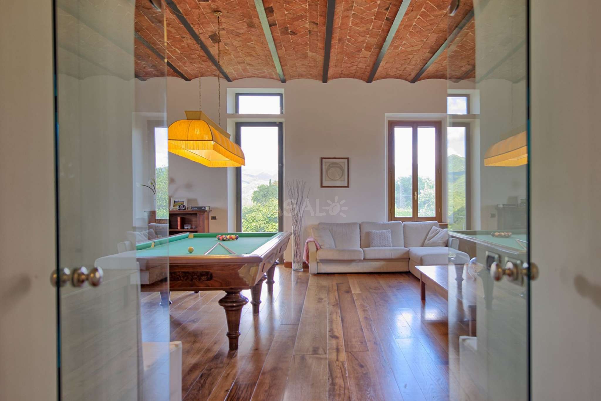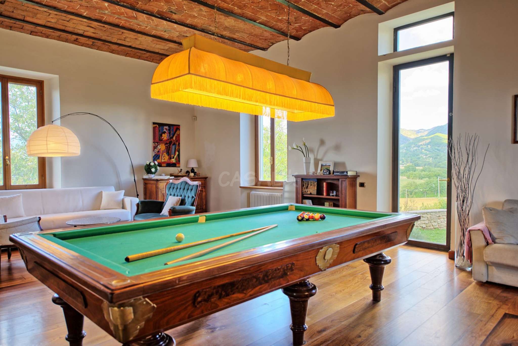 - ein Billardtisch im Wohnzimmer
