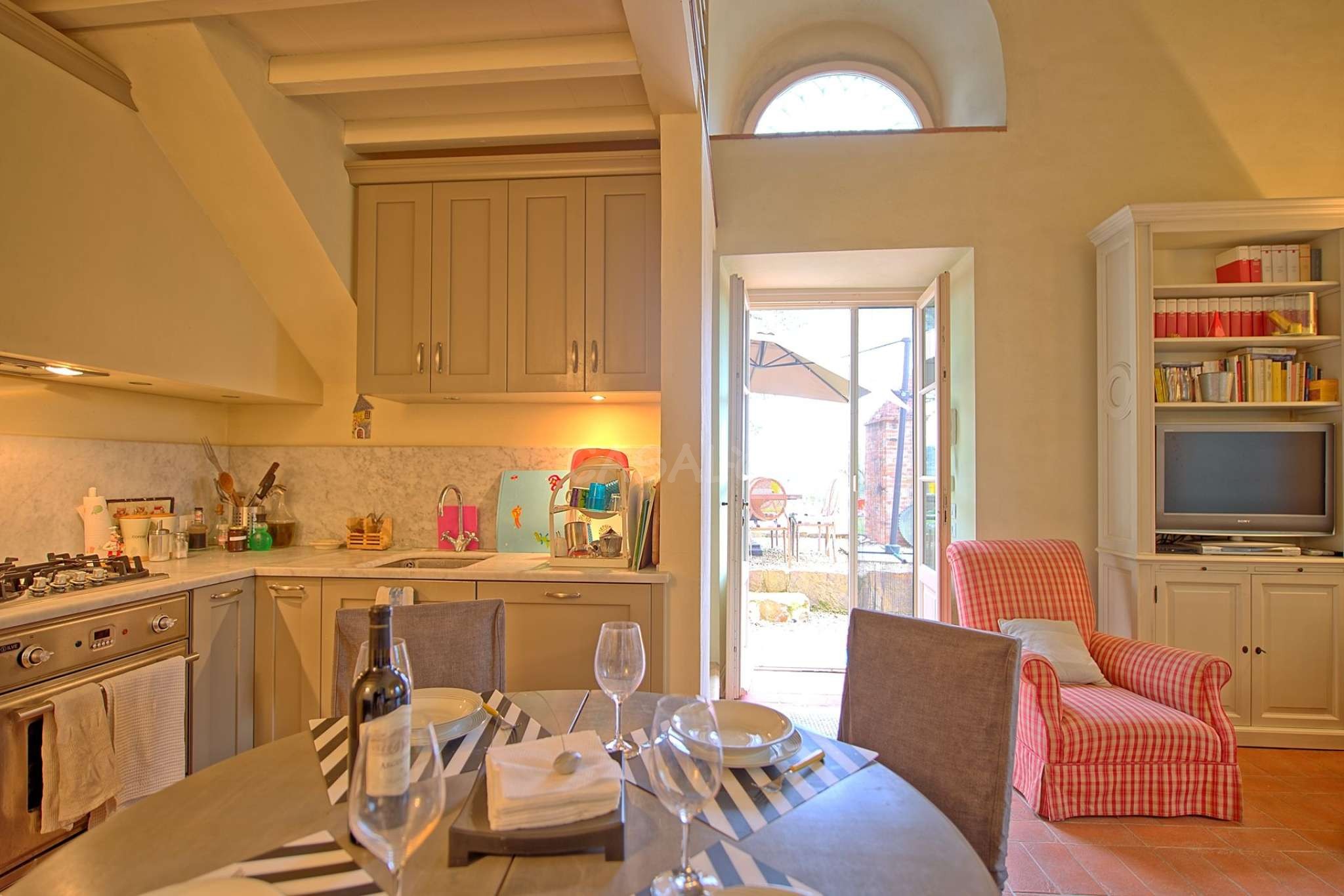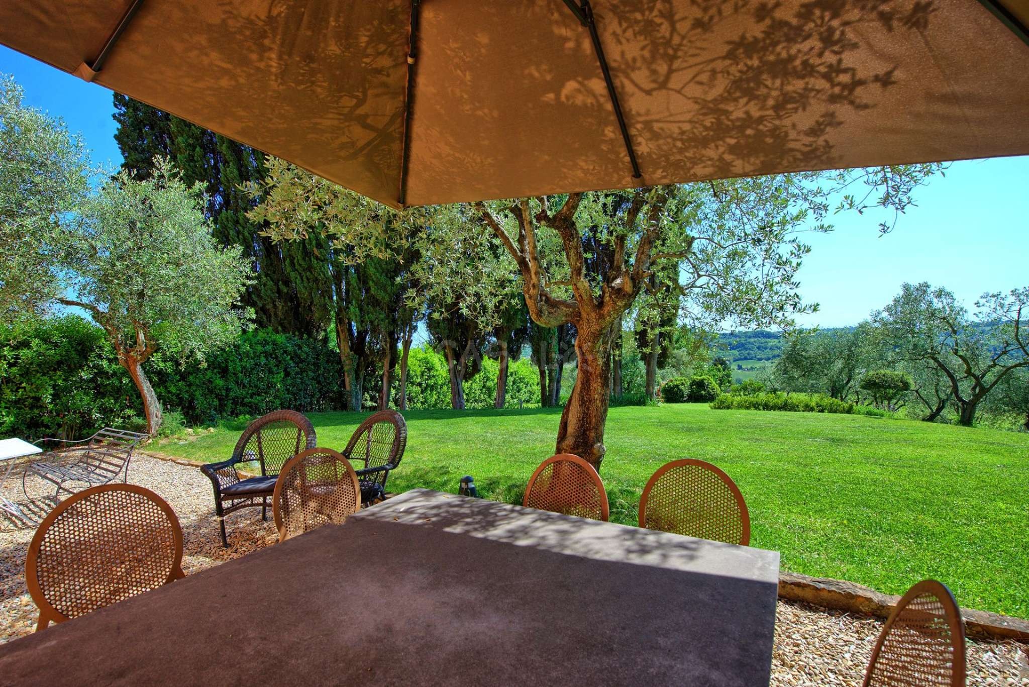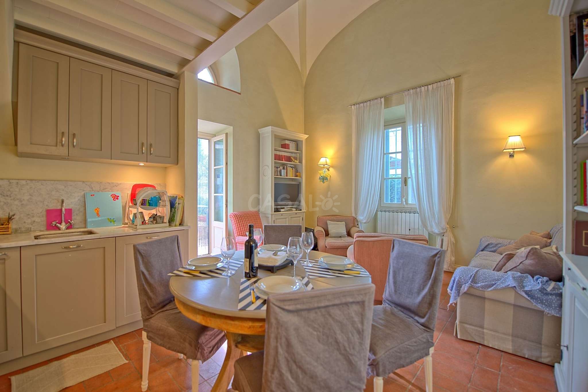 Das Haus gehört zu einem Apartmentkomplex aus 10 Häusern und von der Terrasse aus hat man einen wundervollen Ausblick über das Chianti-Gebiet, welches für seinen Weinanbau, und die historischen Orte bekannt ist.