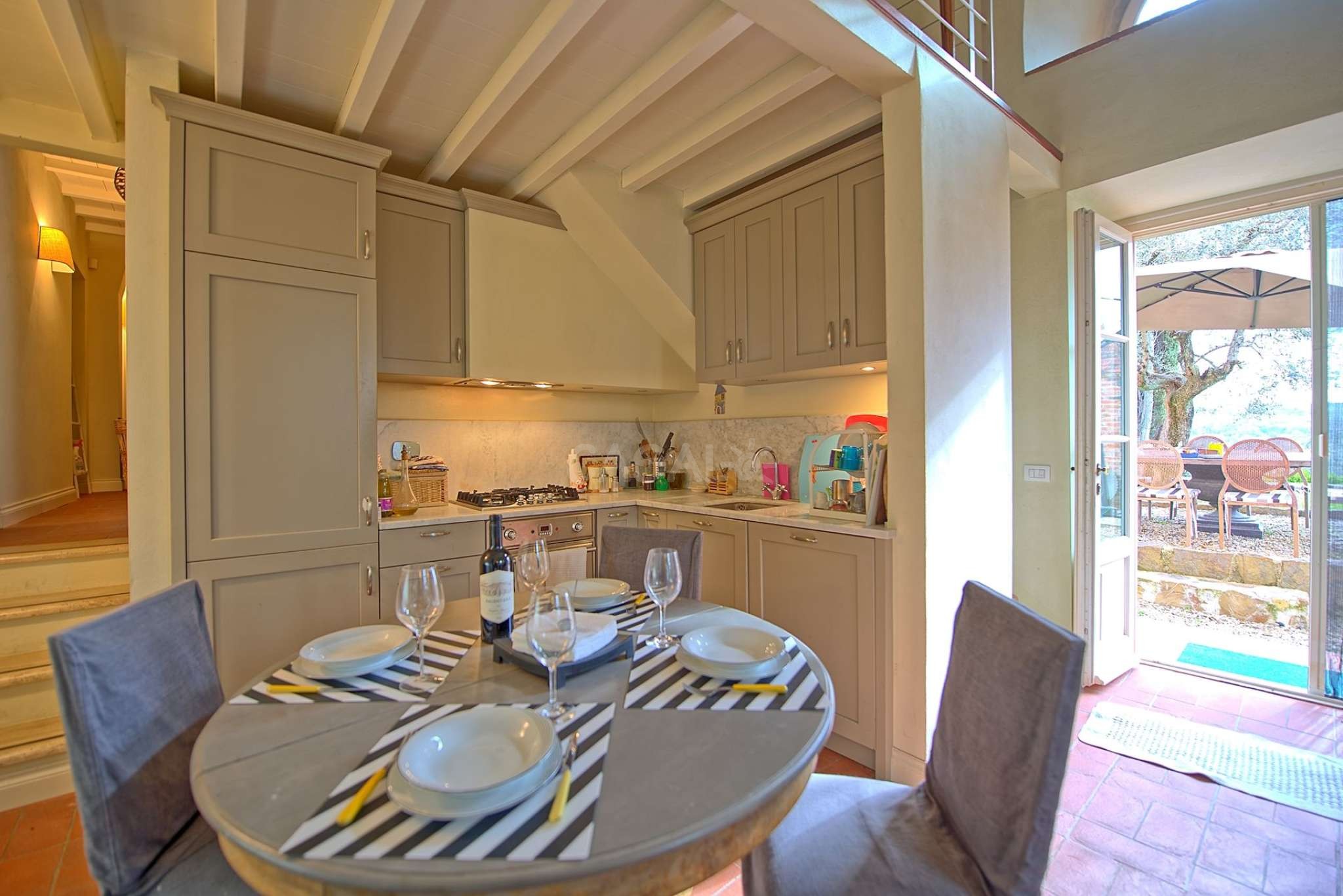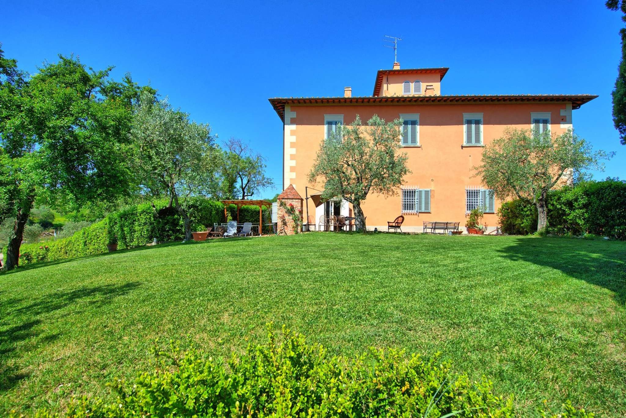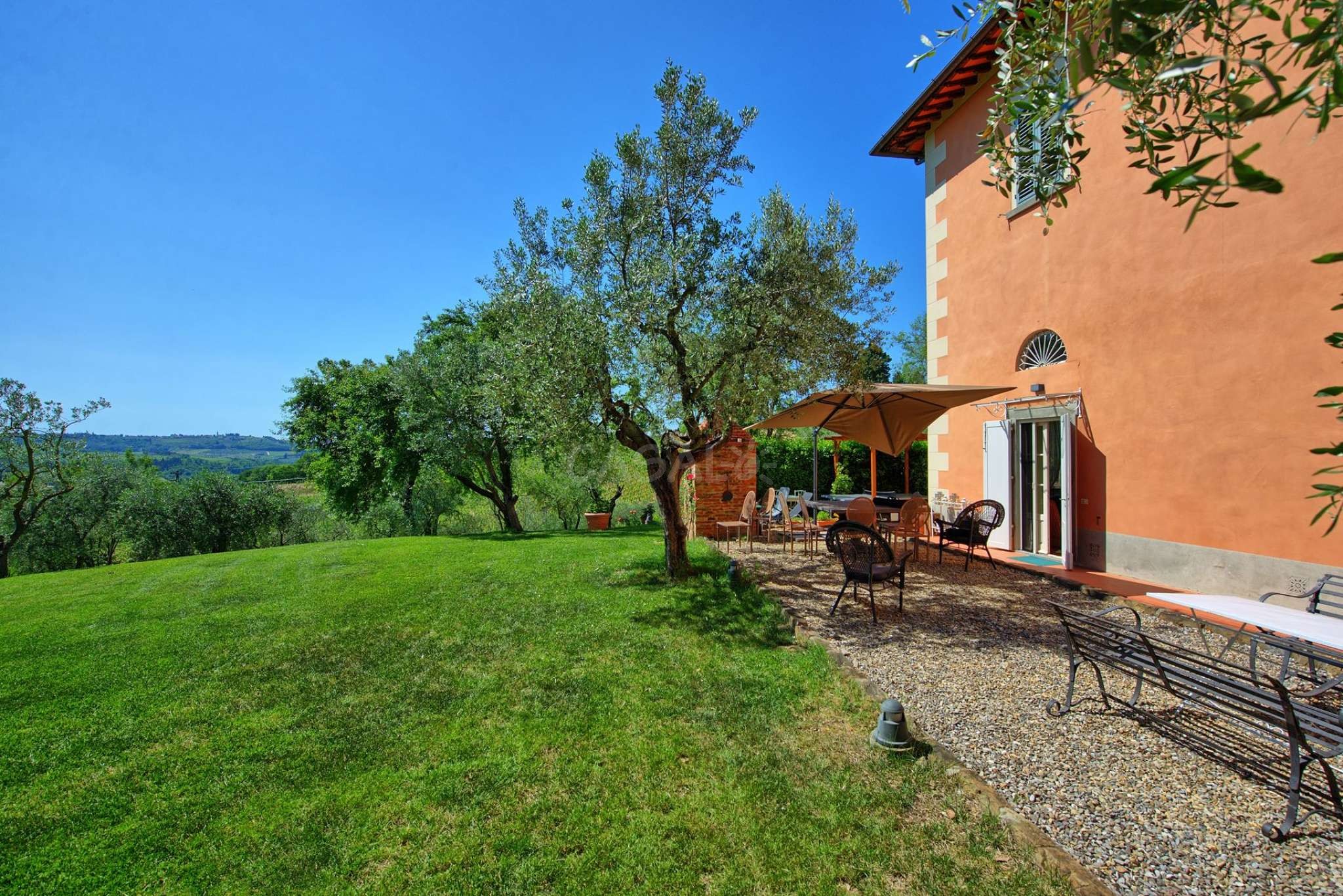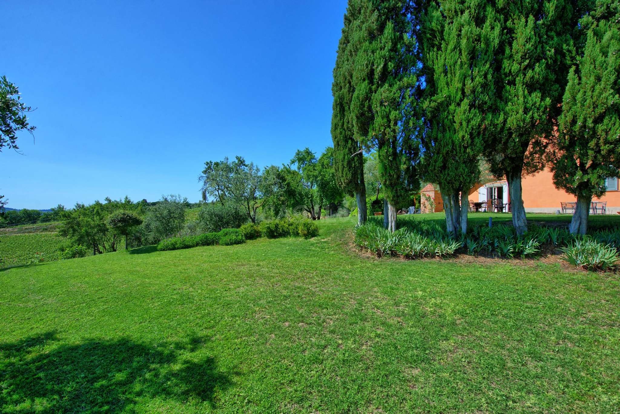 Das Haus gehört zu einem Apartmentkomplex aus 10 Häusern und von der Terrasse aus hat man einen wundervollen Ausblick über das Chianti-Gebiet, welches für seinen Weinanbau, und die historischen Orte bekannt ist.