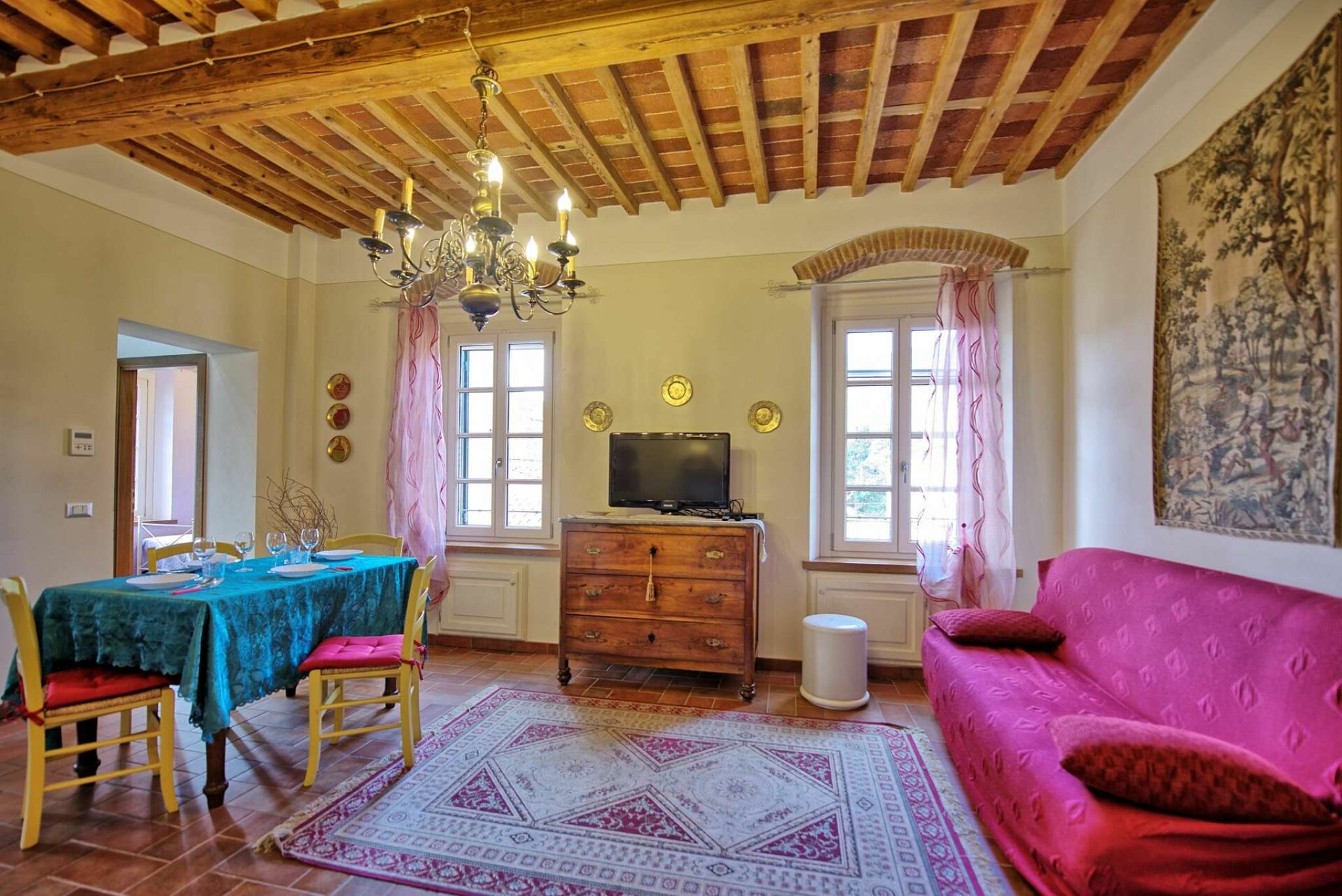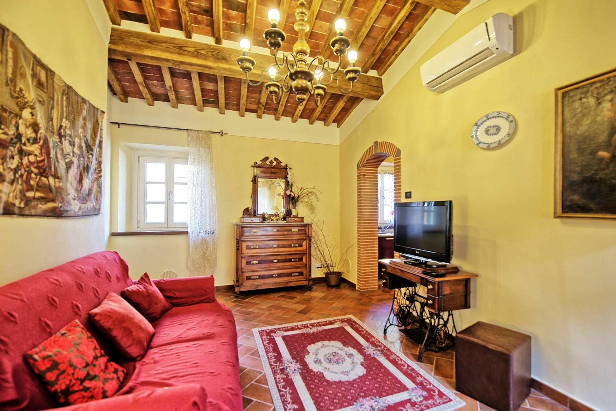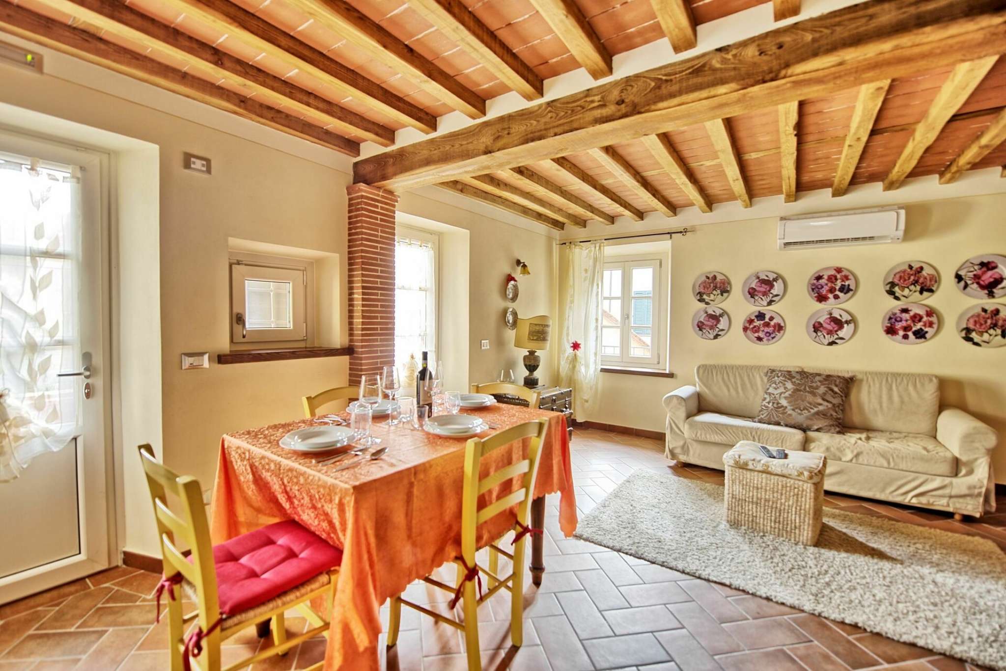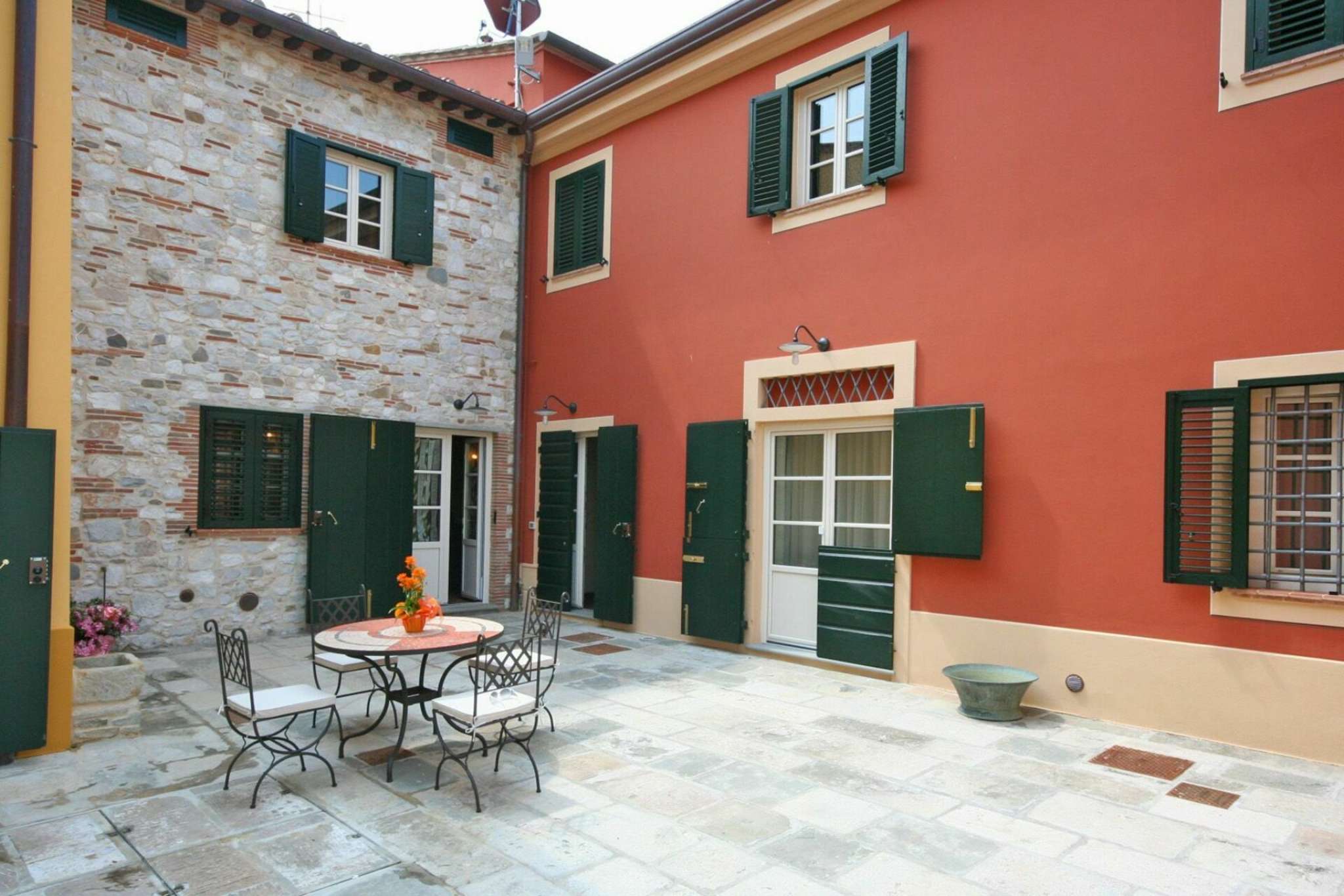 Schönes Landgut in einem Dorf zwischen Pisa und Lucca gelegen. Dank der sorgfältigen Sanierung sind hier 6 hübsche, gemütliche Ferienwohnungen, die geschmackvoll eingerichtet sind entstanden. Die Wohnungen Flavia 3 geht auf das Dorf hinaus, Flavia 1,2 und 4 gehen auf die Landschaft und den Garten hinaus. Jede Wohnung ist mit Klimaanlageanlage und Fußbodenheizung ausgestattet. Dies gewährleistet einen angenehmen Aufenthalt zu jeder Jahreszeit. Die Villa hat eine günstige Lage: auf halbem Weg zwischen Lucca und Pisa (beide Orte sind nur 8 Km entfernt), und auch die Küste bei Versalia schnell (35 Km) erreicht. Die Strände sind hier angenehm, die Cafes, Lokale und Restaurants sind sehr gut.