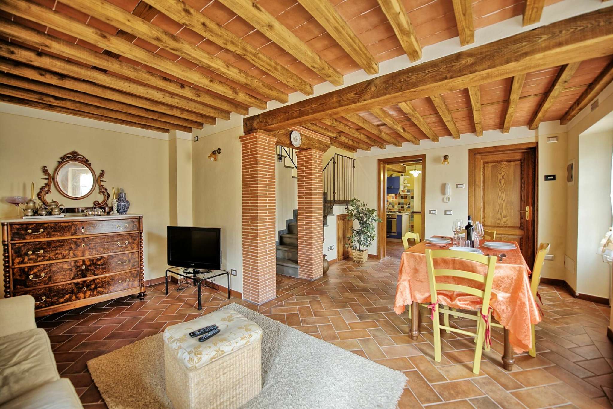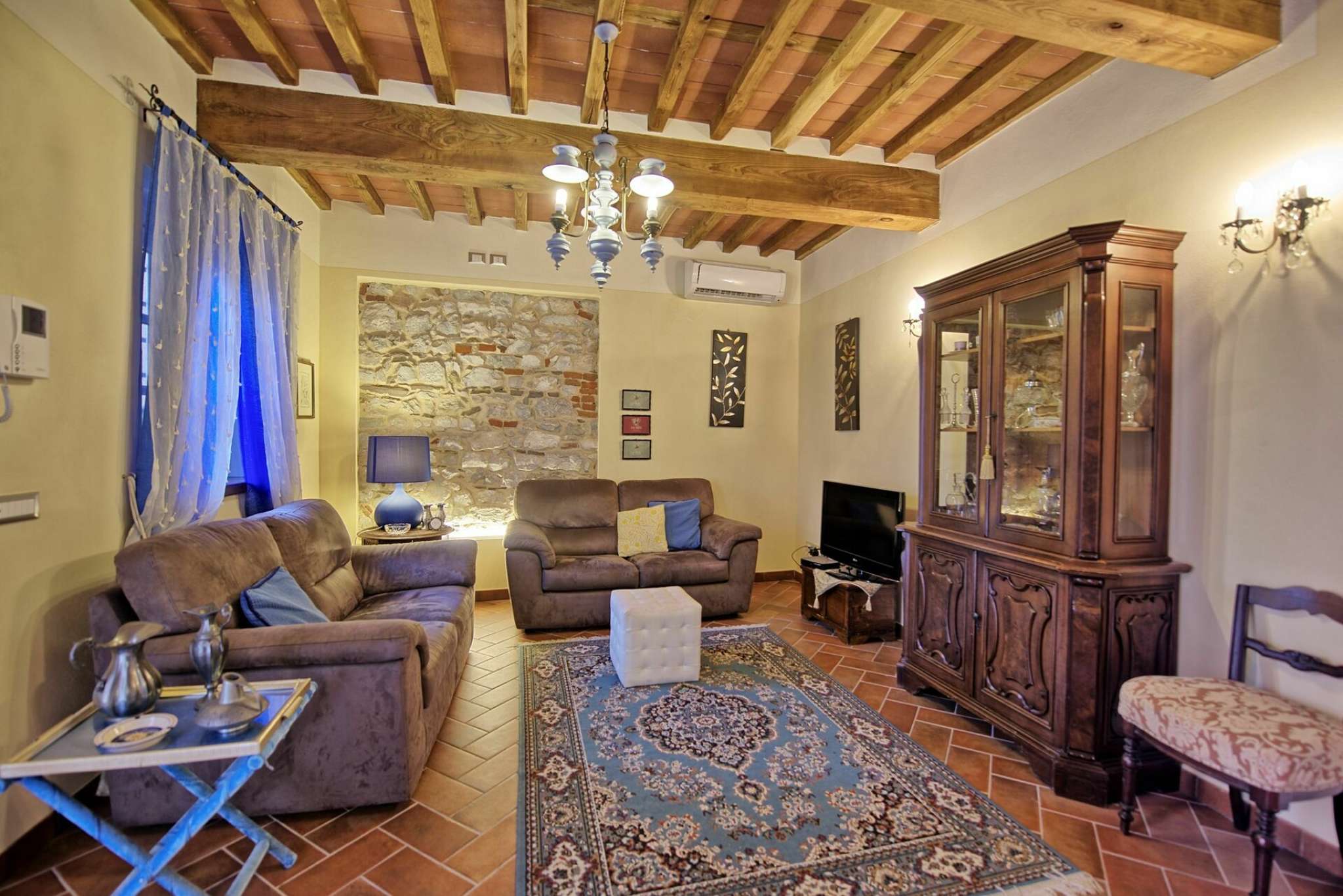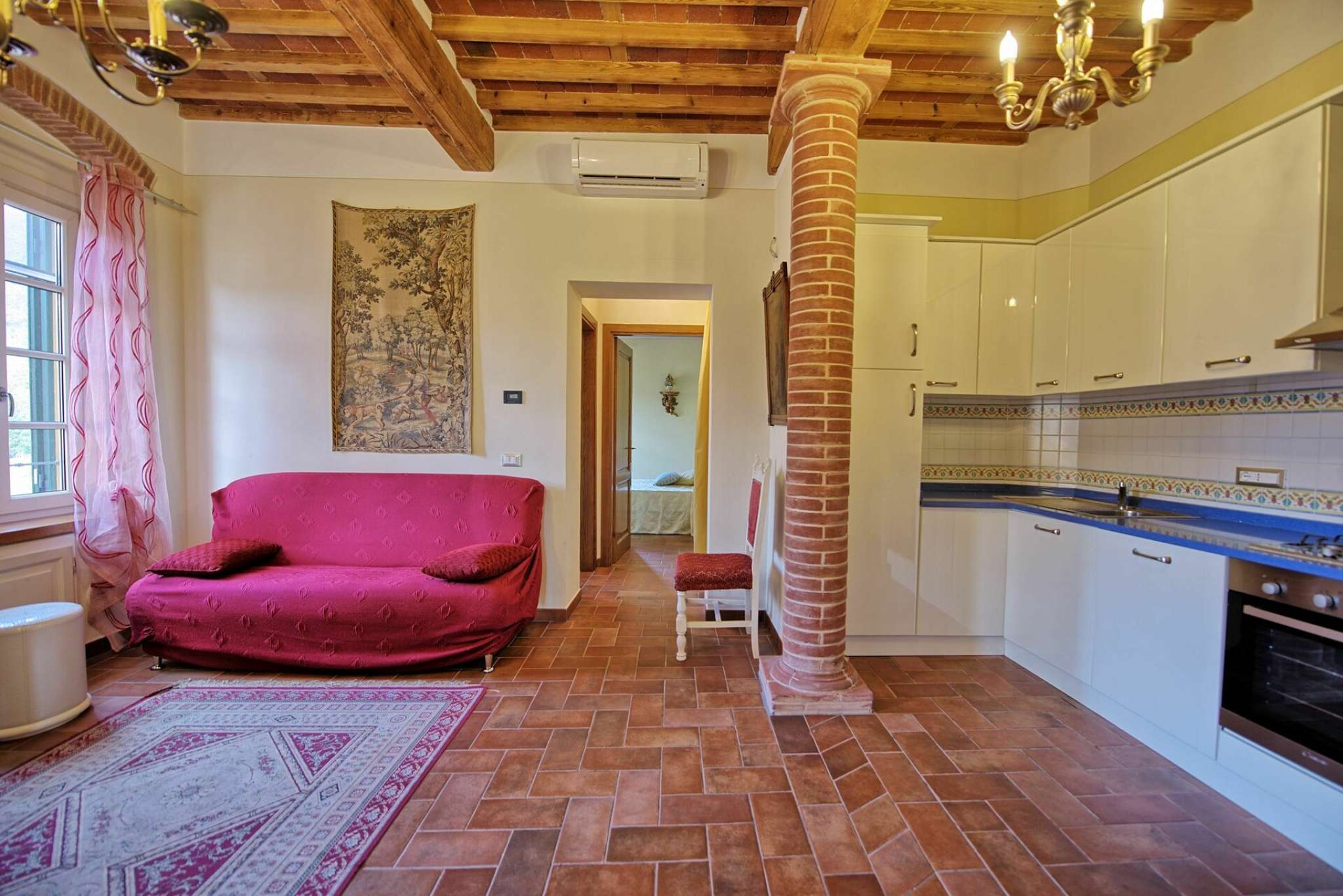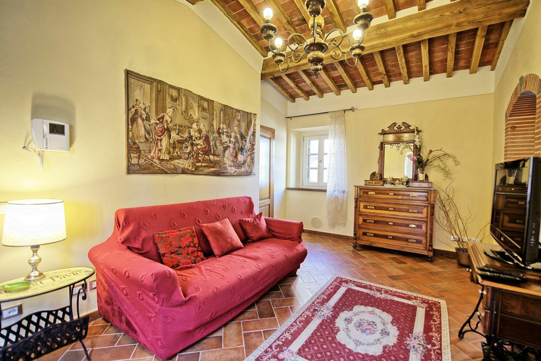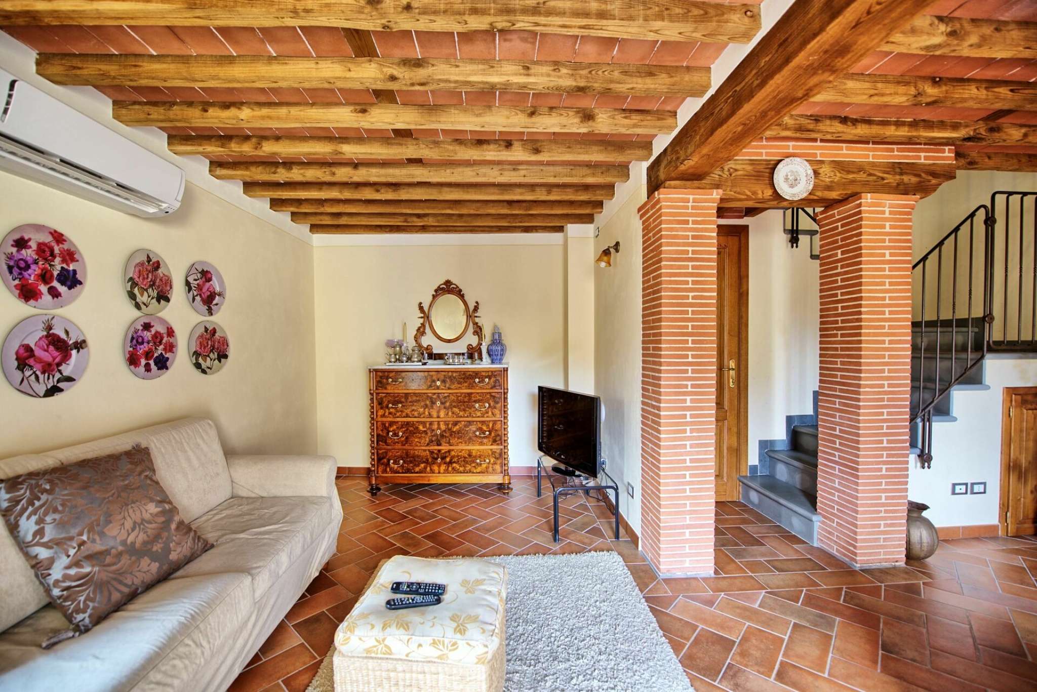 Schönes Landgut in einem Dorf zwischen Pisa und Lucca gelegen. Dank der sorgfältigen Sanierung sind hier 6 hübsche, gemütliche Ferienwohnungen, die geschmackvoll eingerichtet sind entstanden. Die Wohnungen Flavia 3 geht auf das Dorf hinaus, Flavia 1,2 und 4 gehen auf die Landschaft und den Garten hinaus. Jede Wohnung ist mit Klimaanlageanlage und Fußbodenheizung ausgestattet. Dies gewährleistet einen angenehmen Aufenthalt zu jeder Jahreszeit. Die Villa hat eine günstige Lage: auf halbem Weg zwischen Lucca und Pisa (beide Orte sind nur 8 Km entfernt), und auch die Küste bei Versalia schnell (35 Km) erreicht. Die Strände sind hier angenehm, die Cafes, Lokale und Restaurants sind sehr gut.
