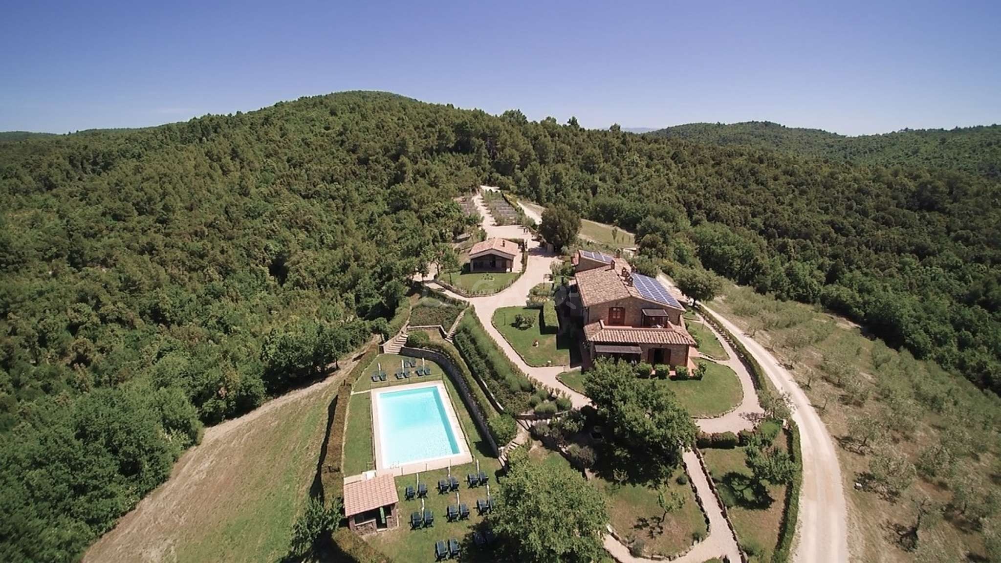 Das wunderschöne, historische Landgut Forte Sorgnano ist ruhig gelegen, das Grundstück umfasst ca. 200 Hektar und verfügt sogar über einen aktiven Bauernhof, einen Kinderspielplatz und einen Pool. Es liegt auf einem kleinen Berg und bietet daher einen wunderbaren Blick über die umliegenden Wälder sowie den hauseigenen Oliven- und Weinanbau. Zudem bietet das Hotel auch viele Aktivitätsmöglichkeiten: erkunden Sie die Umgebung bei einem ausgedehnten Spaziergang oder nutzen Sie die kostenlosen Mountainbikes der Ferienanlage für eine erlebnisreiche Radtour. Zudem steht Ihnen ein kleiner Fitnessraum mit modernen Sportgeräten zur Verfügung. Lassen Sie die Natur auf sich wirken! Der Wellnessbereich mit Jacuzzi und Sauna bietet Entspannung und Erholung nach einem anstrengenden Tag. Seine Panoramafenster bieten einen Blick auf den wundervollen Garten, sodass Sie einfach mal abschalten können. Die Ferienanlage bietet ein reichhaltiges Frühstück sowie ein 4-Gänge-Abendessen aus überwiegend regionalen Produkten.