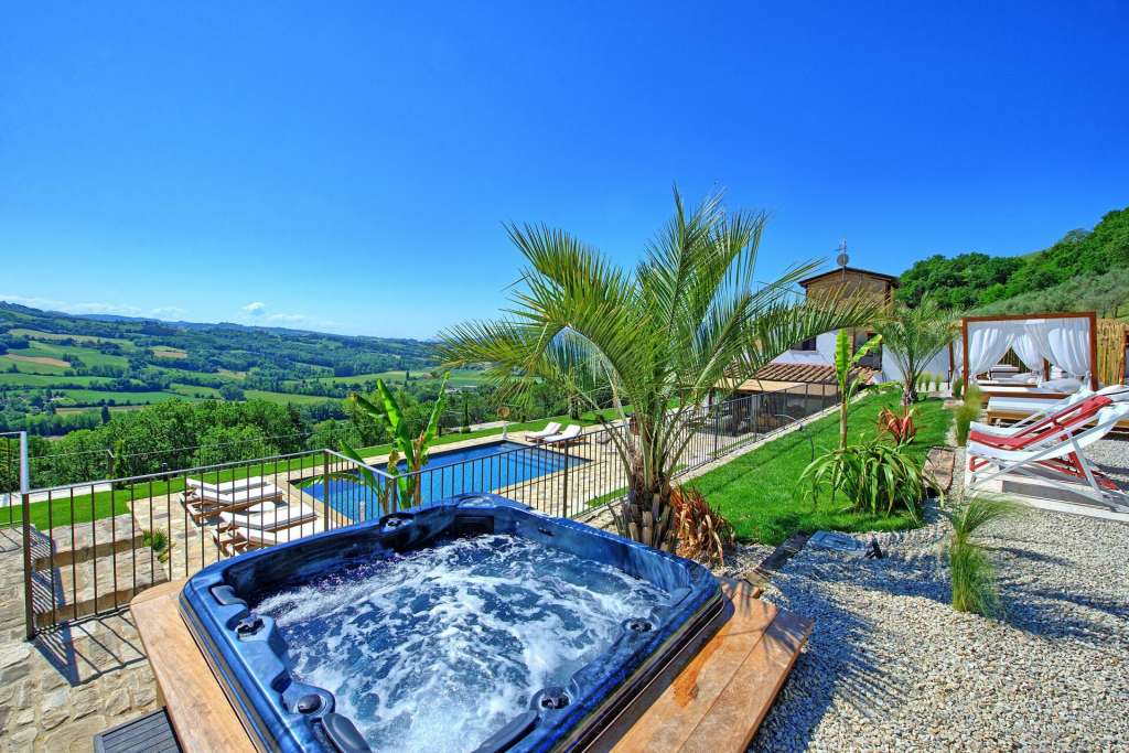 Dieses exklusive Ferienhaus mit privatem Pool ist in den Hügeln in Montone (Perugia) gelegen. Die Villa ist aus der Renovierung eines alten Landhauses entstanden, das heute als Ferienhaus genutzt wird. Dank seiner 6 Schlafzimmer bietet es Platz für bis zu 12 Personen. Die Innenräume sind geschmackvoll eingerichtet und mit allem modernen Komfort ausgestattet. Im Außenbereich bietet Villa Destino ihren Gästen einen schönen und großen Garten mit üppigen Bäumen und Blumen, in dem die Gäste einen herrlichen privaten Pool, einen Hydromassage-Pool, Sonnenliegen und Sonnenschirme finden: Es ist die ideale Umgebung, um die wunderbare Tage mit Freunden oder der Familie zu verbringen. Ein Grillplatz, der von einem Pavillon mit Tisch, Stühlen und Sofas umgeben ist, steht zur Verfügung, um bequem im Freien zu essen. Vom Grundstück aus genießt man einen herrlichen Panoramablick auf die Natur und die umliegenden Hügel.