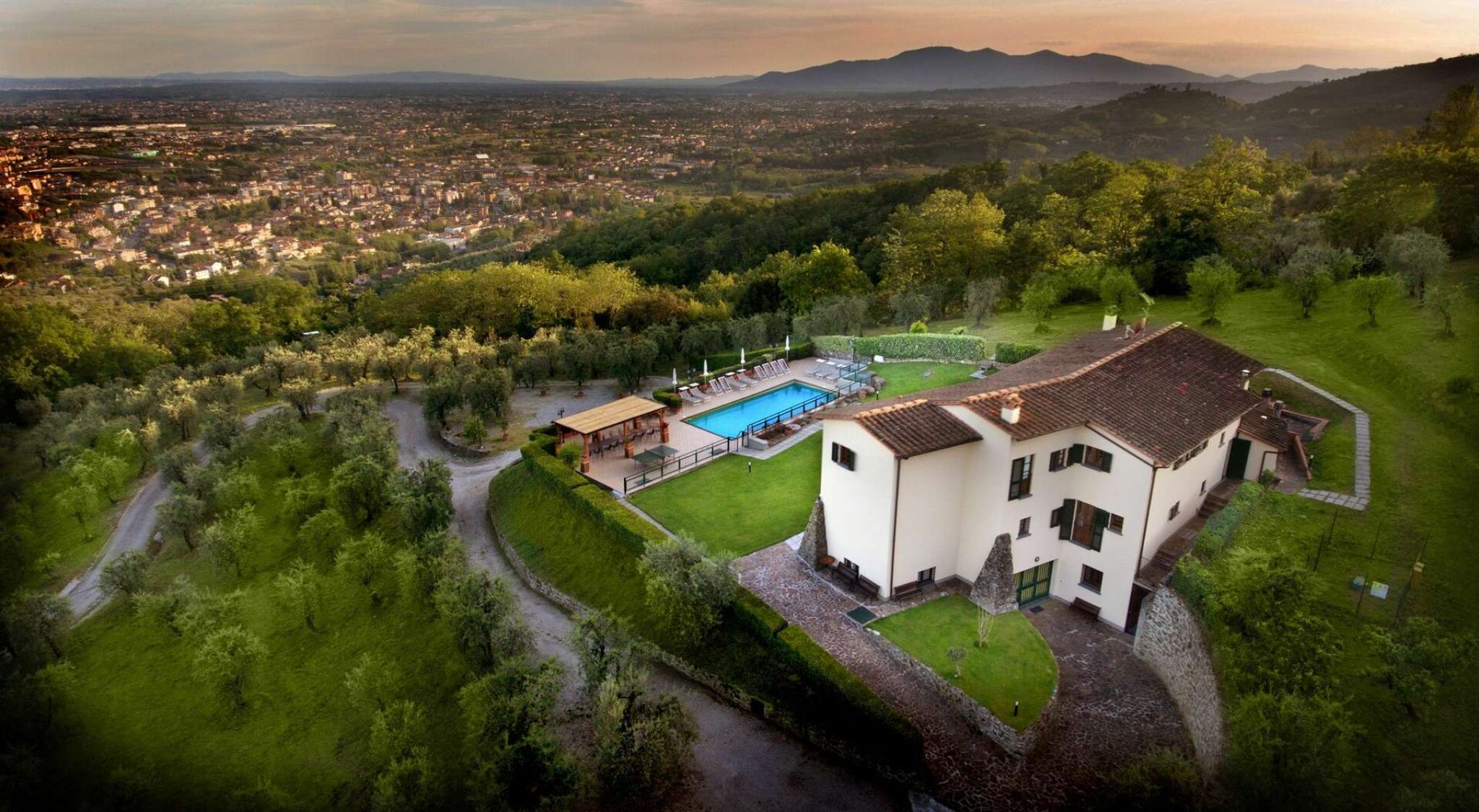Die Villa befindet sich auf einem Hügel mit einer Fläche von 10 Hektar. Der riesige Olivenhain, der Garten, die Obstplantagen und der Wald befindet sich um das Haus.