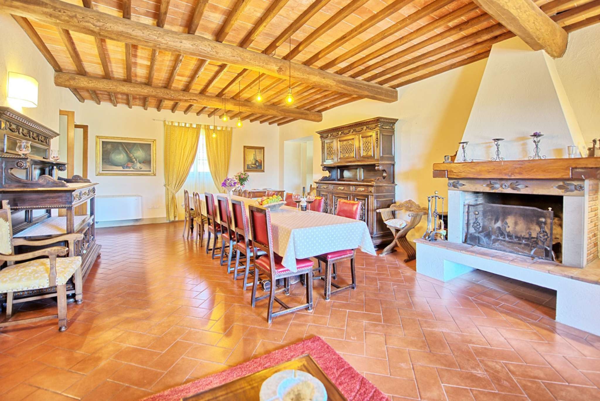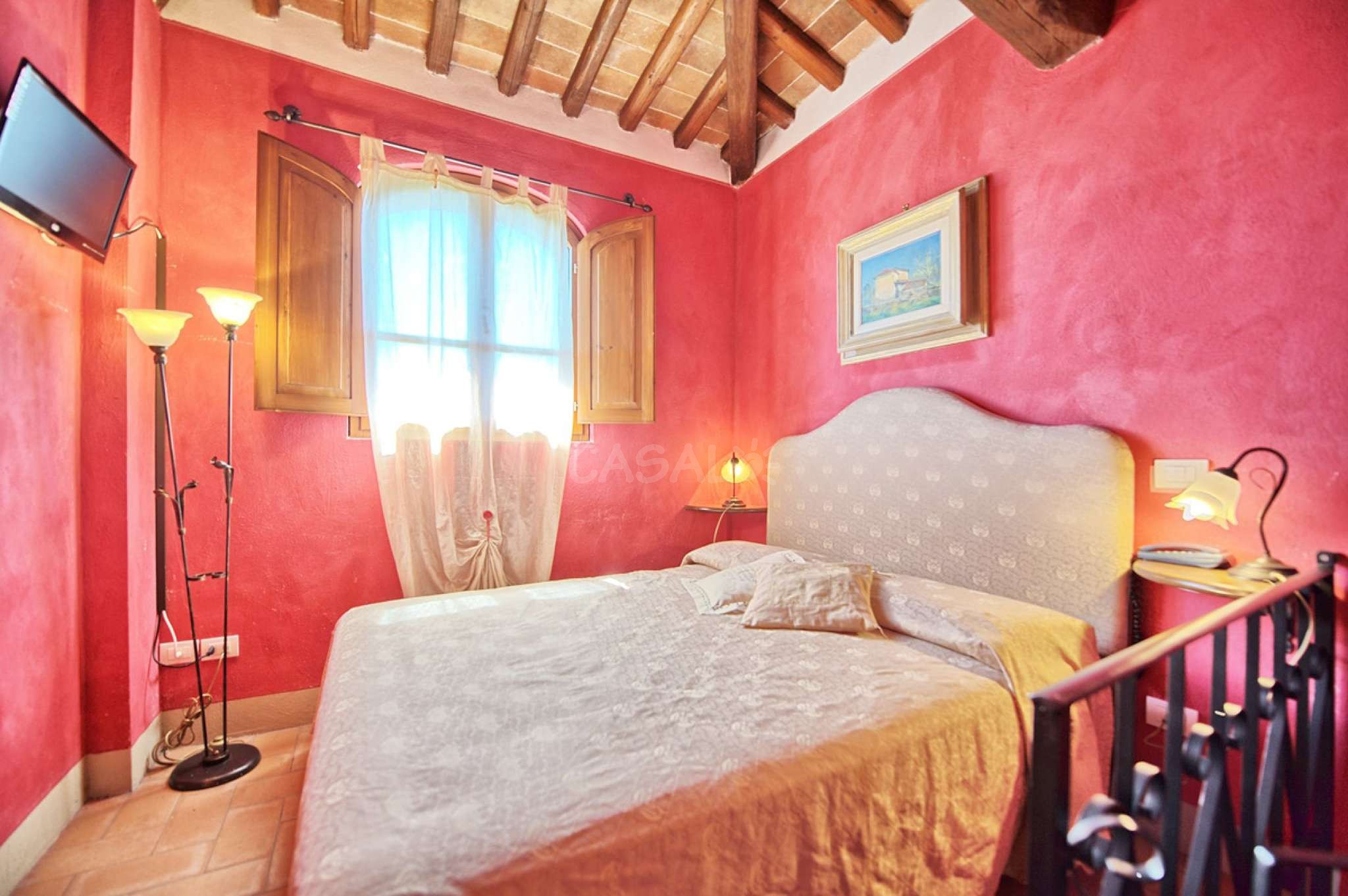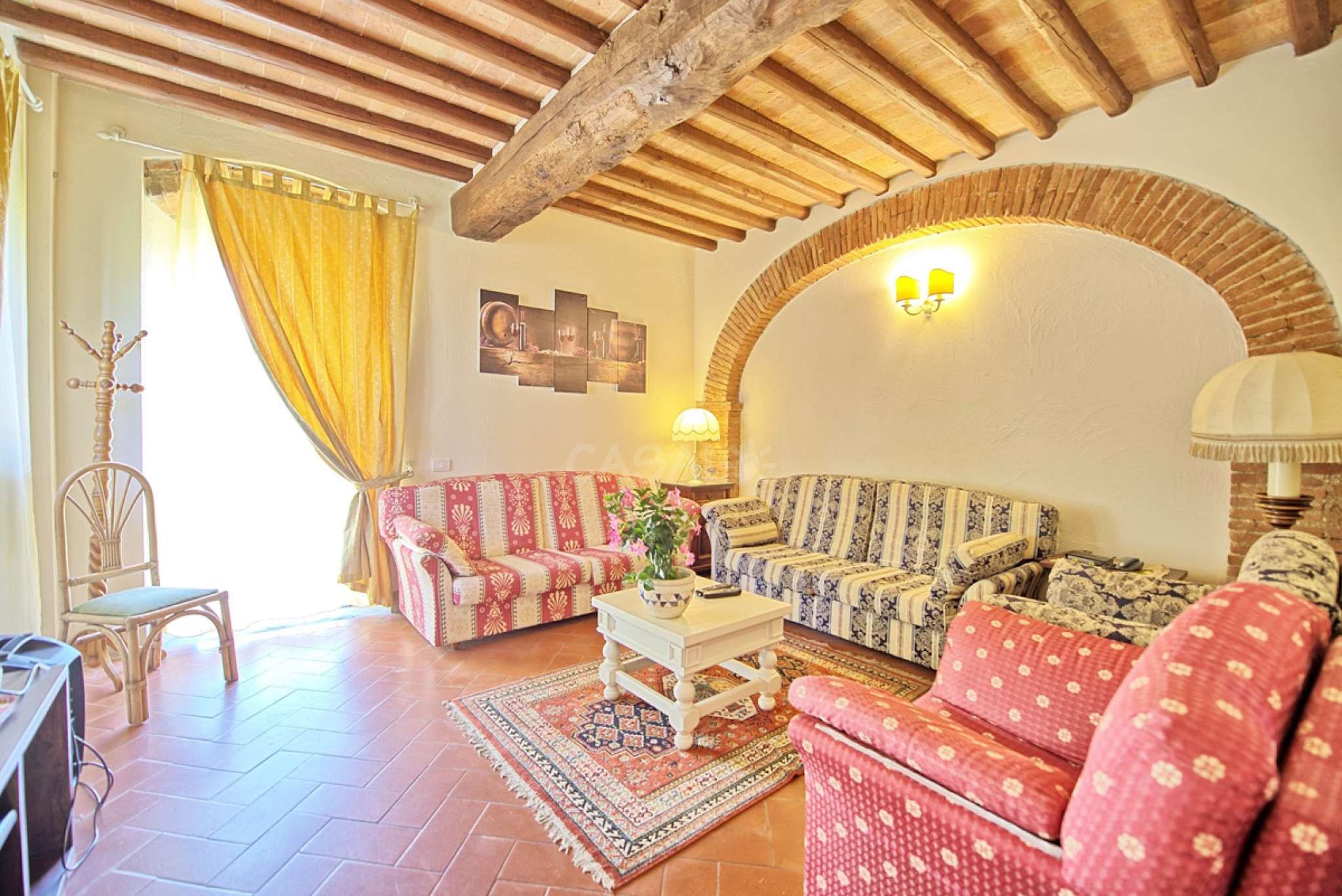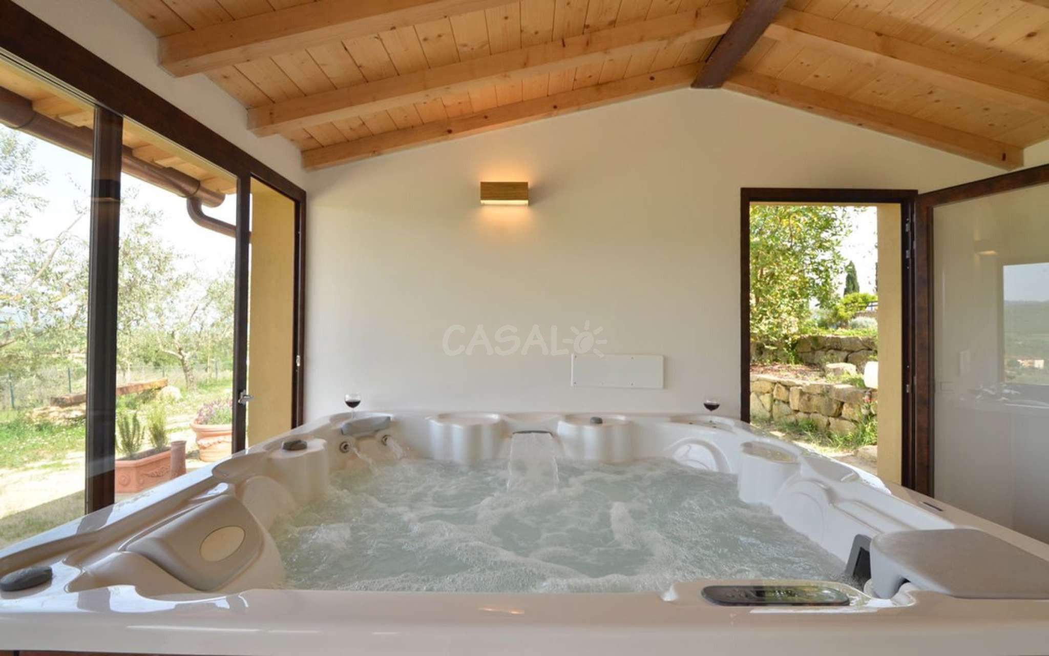 In dem gepflegten, komplett eingezäunten Garten befinden sich ein privater Pool mit Dusche, ein Grill, sowie ein überdachter Freisitz für lauschige Abendessen im Freien. Das Landgut bietet eine große Loggia im Erdgeschoss und eine zweite Loggia im ersten Stock mit fantastischem Panoramablick auf die umliegenden Wälder, das Dorf Bucine mit den ersten Hügeln des Chianti Gebiets am Horizont.