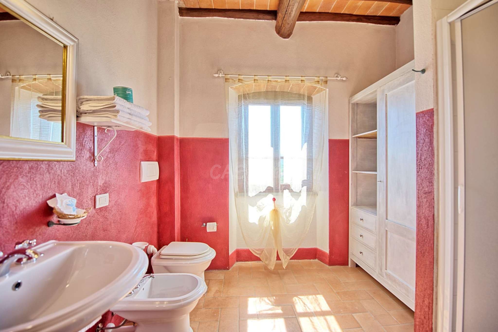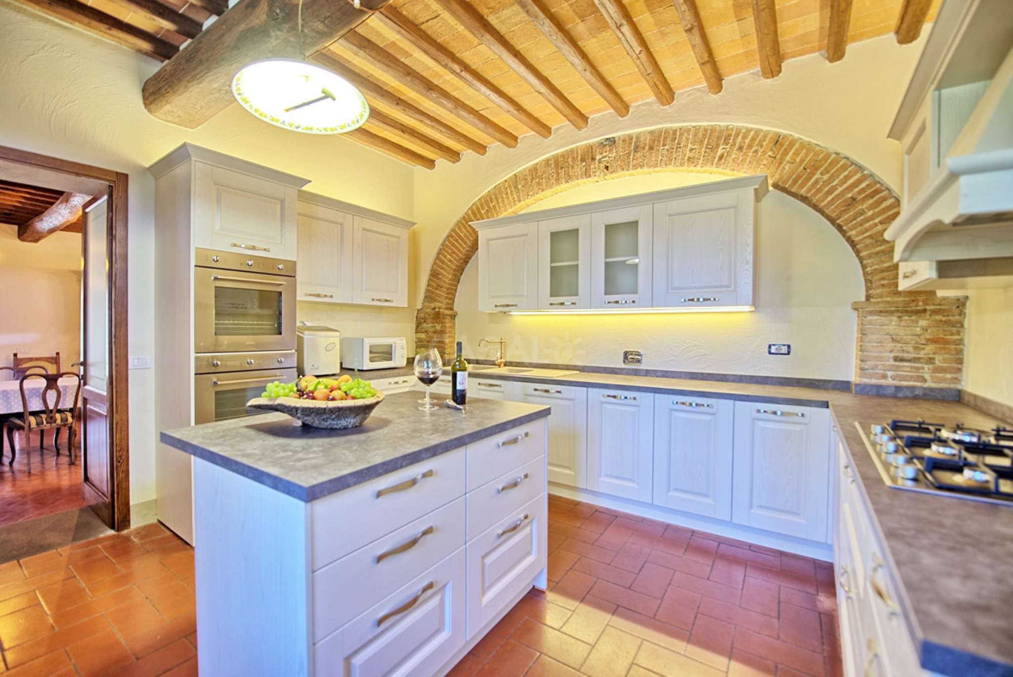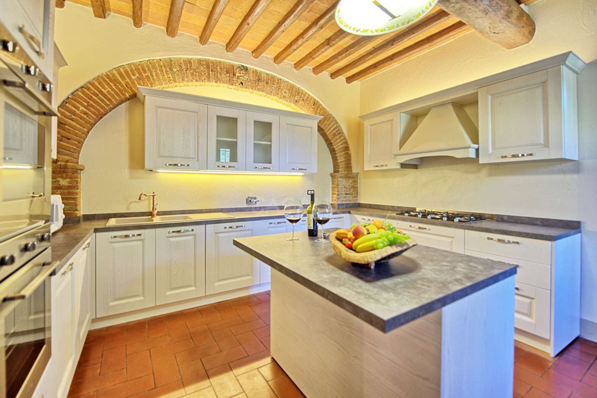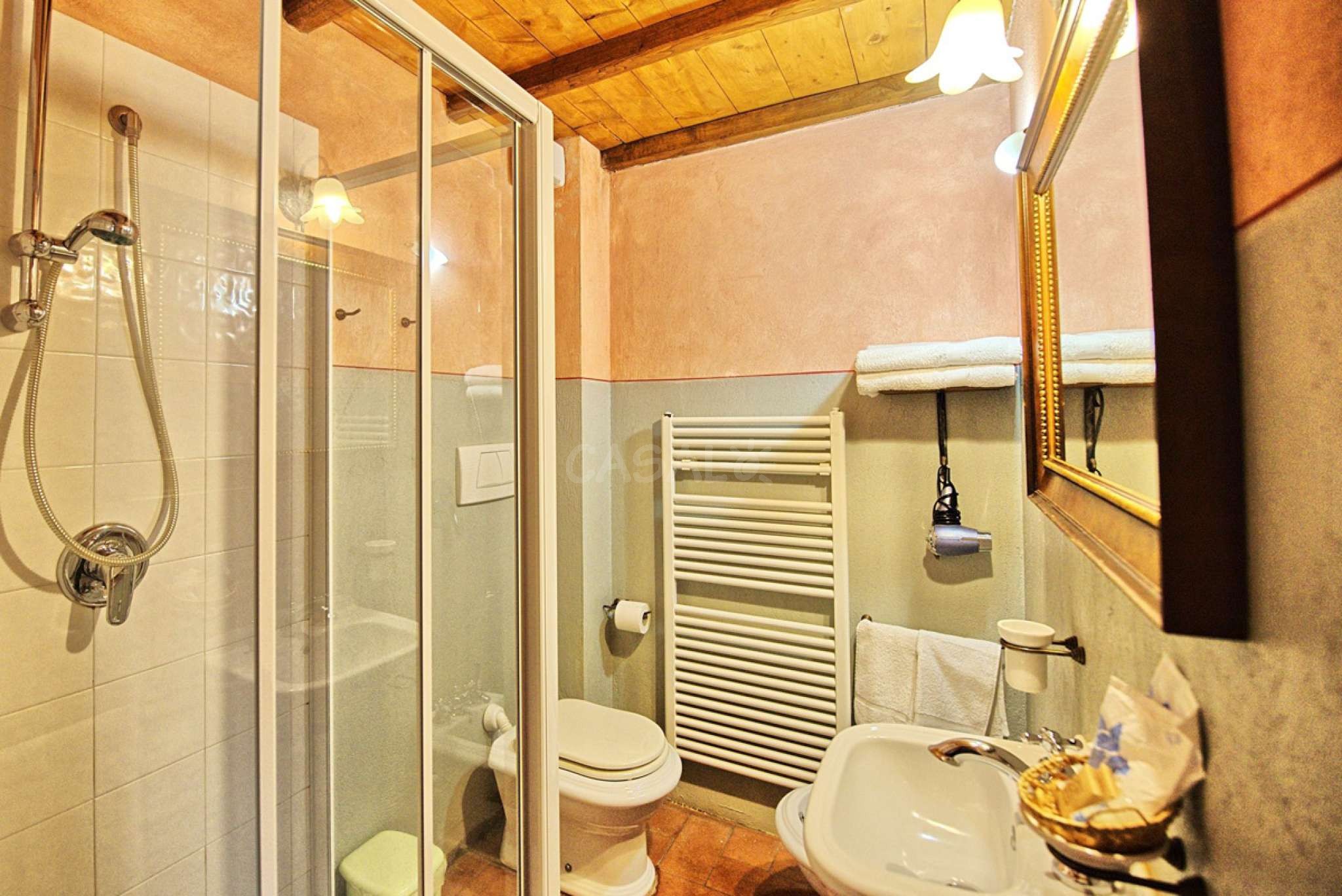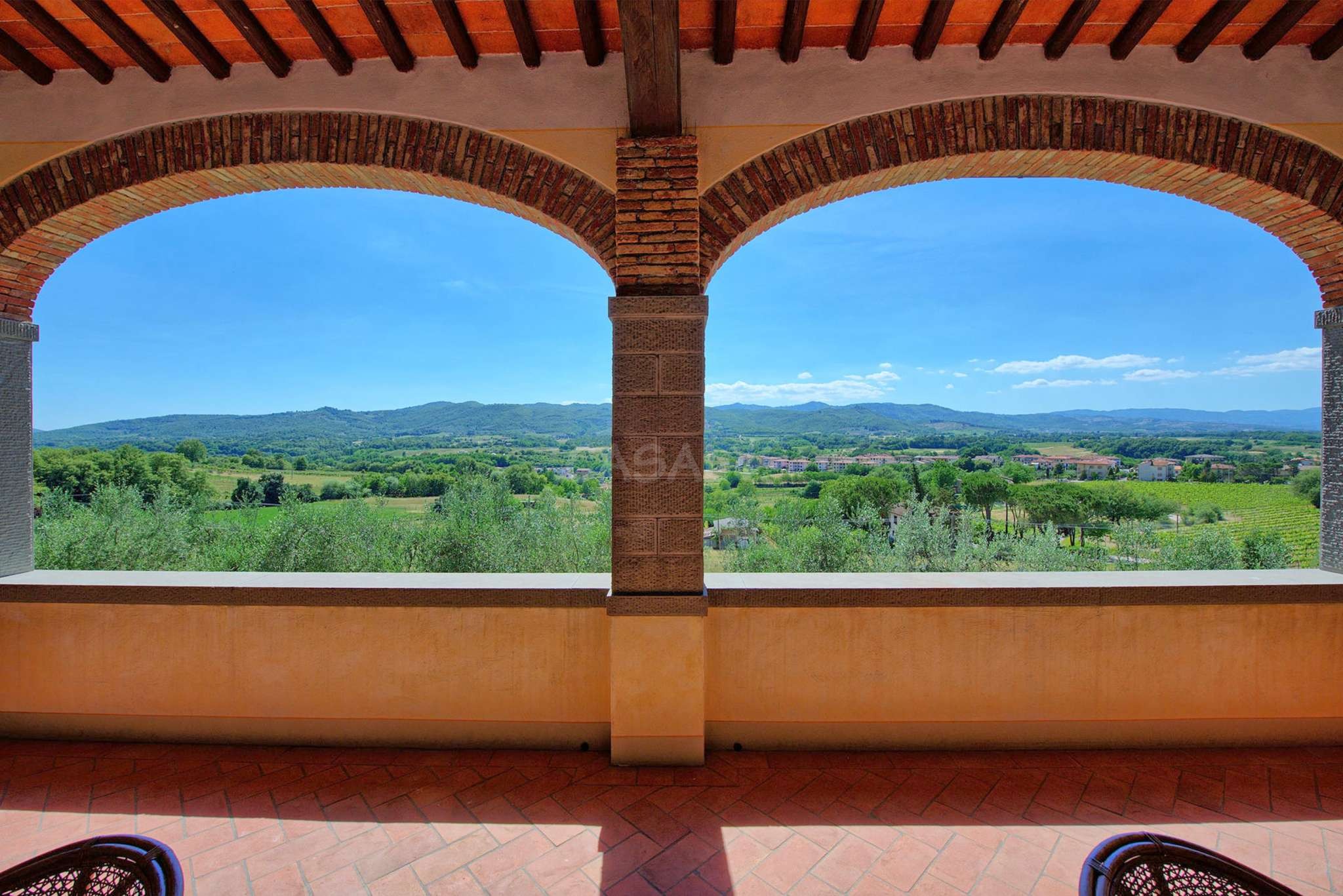 In dem gepflegten, komplett eingezäunten Garten befinden sich ein privater Pool mit Dusche, ein Grill, sowie ein überdachter Freisitz für lauschige Abendessen im Freien. Das Landgut bietet eine große Loggia im Erdgeschoss und eine zweite Loggia im ersten Stock mit fantastischem Panoramablick auf die umliegenden Wälder, das Dorf Bucine mit den ersten Hügeln des Chianti Gebiets am Horizont.