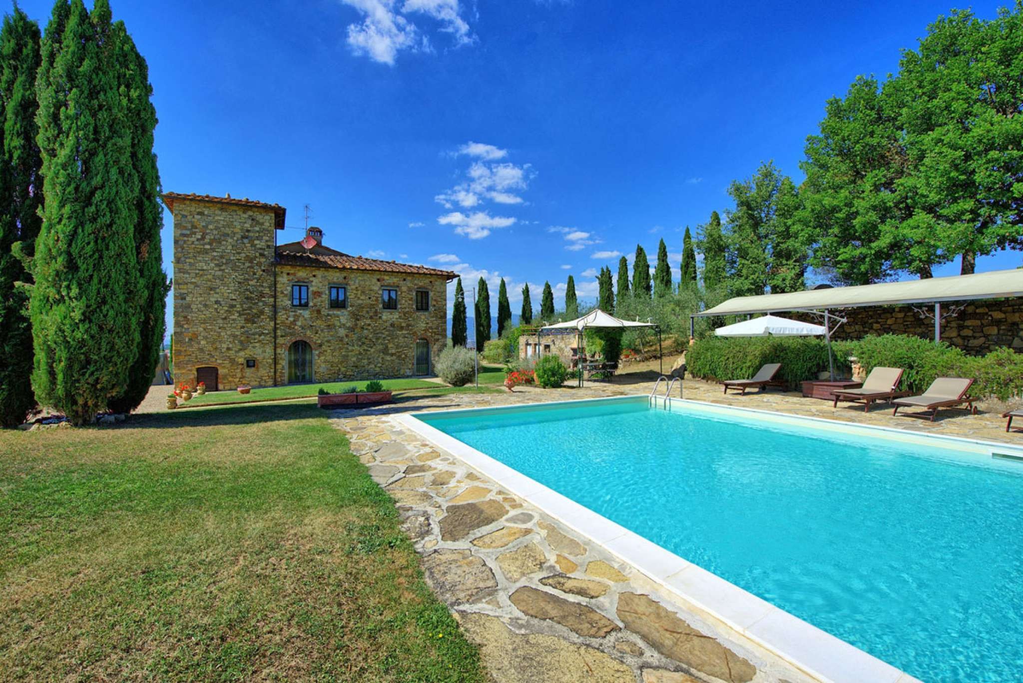 Das stattliche Landgut aus dem 18. Jahrhundert ist im "Leopoldino-Stil" mit 2 charakteristischen Türmchen gebaut und verfügt über einen eigenen Pool im Garten. Es liegt im Chianti-Gebiet der Toskana und diente ursprünglich als Jagd-Landsitz. Dank einer behutsamen Sanierung blieb der Charme des Landgutes durchgängig erhalten. Ergänzt durch eine geschmackvolle, stilgerechte Einrichtung mit modernem Komfort ist Villa Leopoldina heute ein gern gebuchtes Feriendomizil.