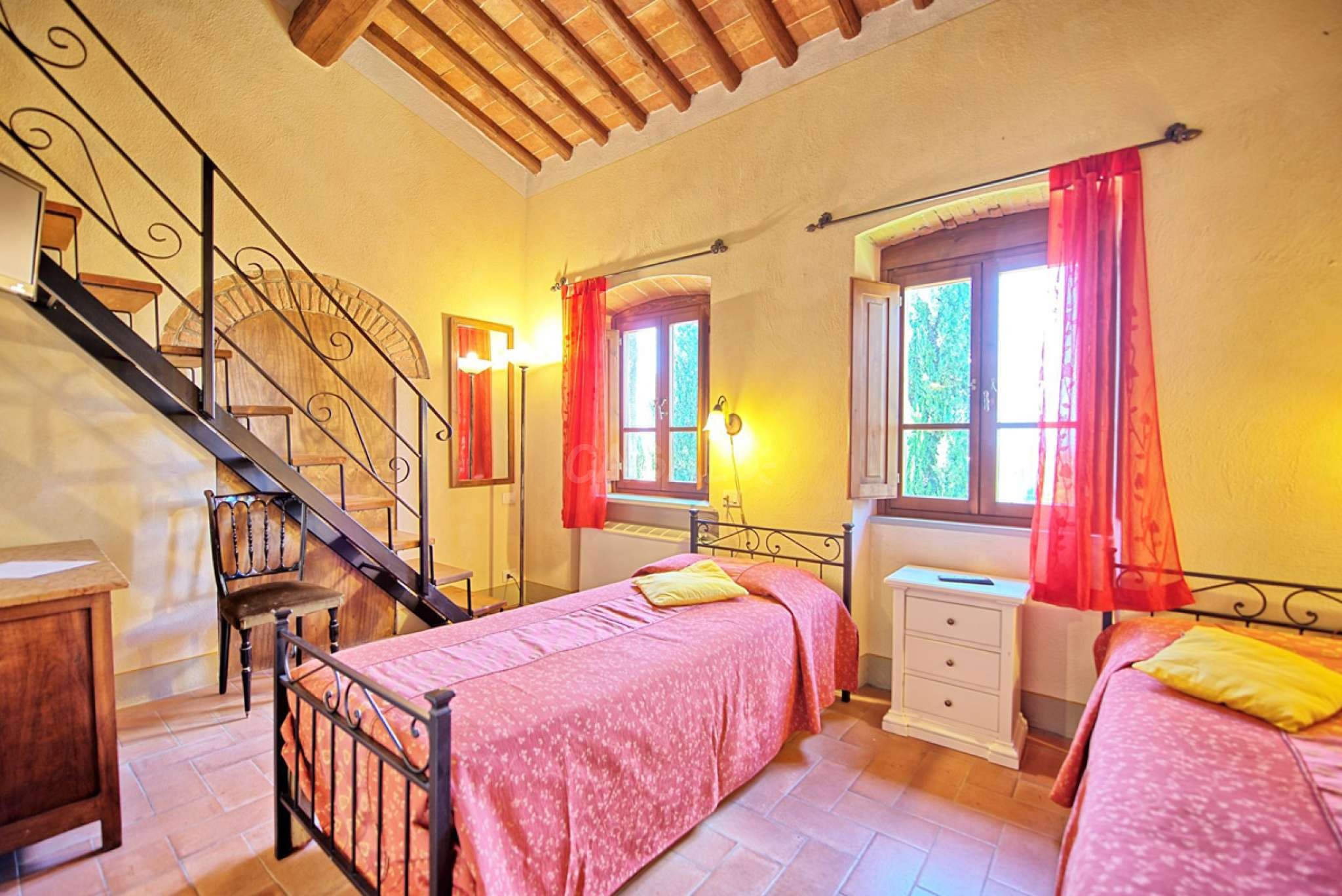 2. Stock: (zugänglich von der Loggia im ersten Stock über eine Wendeltreppe):