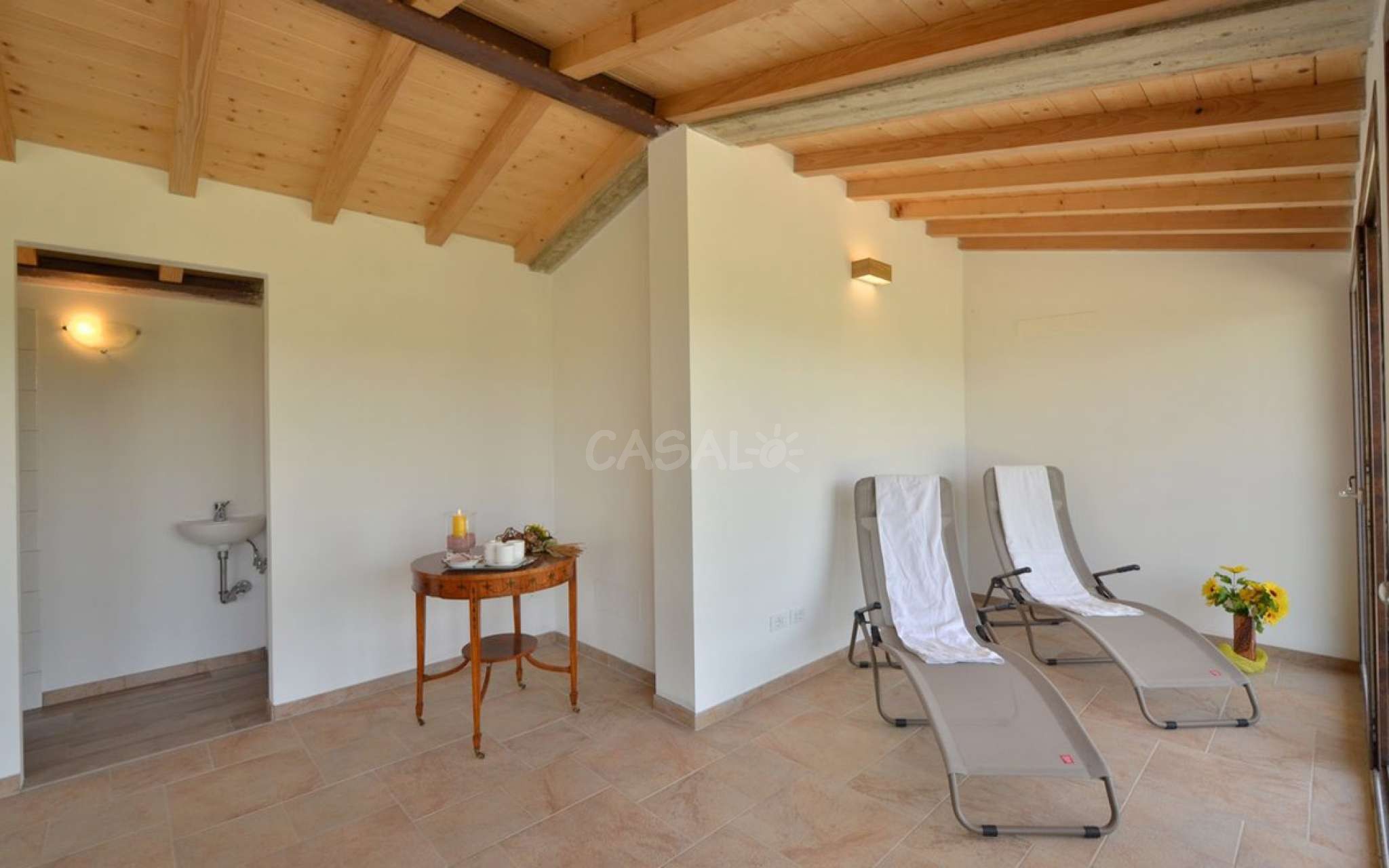 Ein zusätzlicher Raum mit Whirlpool für 6 Personen mit einer Wassertemperatur bis zu 40 Grad, sowie ein türkisches Bad stehen das ganze Jahr über zur Verfügung.