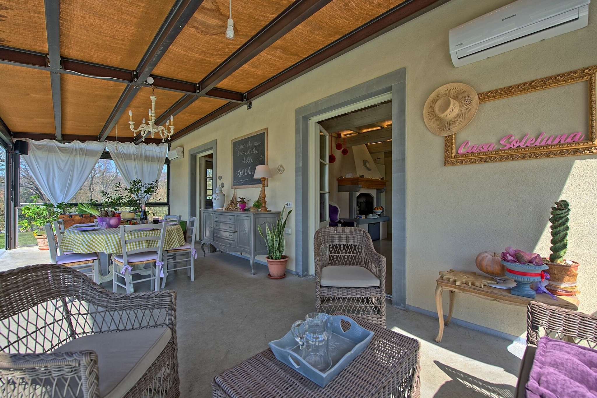 Villa Soleluna ist ein schönes und komfortables Ferienhaus mit privatem Pool auf den Hügeln der Toskana in der Nähe von Cortona. Das Haus erstreckt sich über mehrere Etagen und ist geschmackvoll eingerichtet. Die Innenräume sind mit allem Komfort ausgestattet und bieten dank der 3 Schlafzimmer (jedes mit eigenem Bad) Platz für bis zu 6 Personen. Ein ausgestatteter Grillplatz ermöglicht es, im Freien zu essen. Das Haus liegt nur wenige Kilometer von den ursprünglich etruskischen Städten Cortona und Arezzo, Siena und Florenz entfernt. Alle Städte des Val d'Orcia und des nahe gelegenen Umbrien sind ebenfalls leicht zu erreichen. Die Eigentümer wohnen nicht weit entfernt und stehen für jeden Bedarf zur Verfügung.