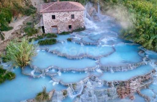 Etwa 100 km südlich von Florenz entfernt in der toskanischen Maremma liegt das Örtchen Saturnia. Hier befindet sich die natürliche Therme Saturnia, die nicht nur eine der beliebtesten, sondern auch eine der ältesten Thermen der Toscana ist. Bereits die Römer wussten die Vorzüge des warmen Wassers zu schätzen und errichteten hier das „Bagno secco“, dessen Ruinen noch heute besichtigt werden können. Der Name Saturnia stammt vom römischen Gott Saturn, der der Legende nach die Stadt gegründet hat.